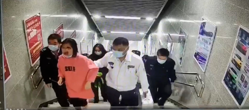 2020年10月17日,合肥地铁3号线图书馆站内,一名女子下楼梯时玩手机不小心一脚踩空,从20多级台阶重重地摔到地面上,脸部受伤严重.
