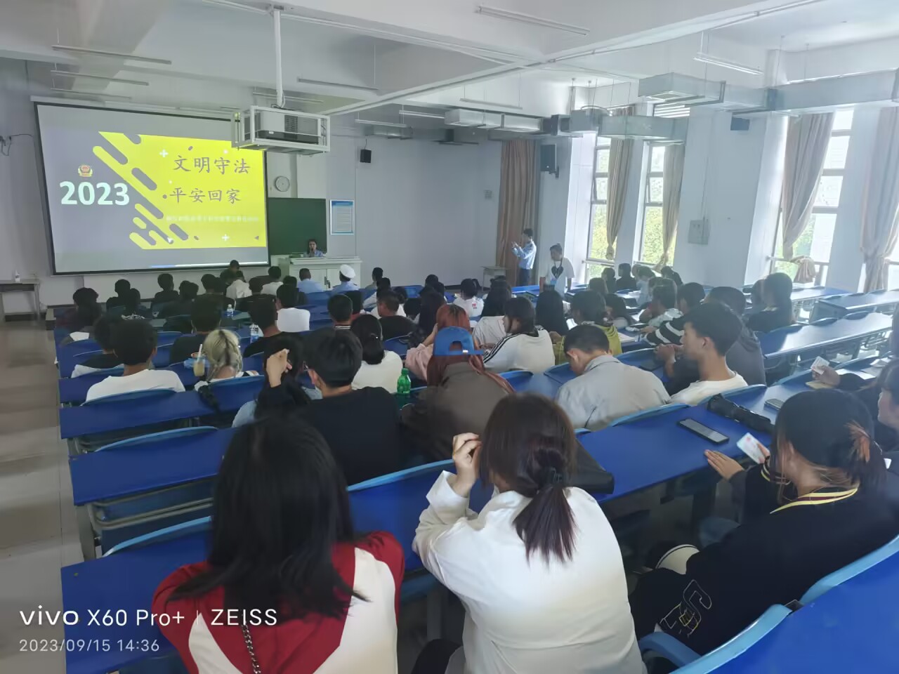 为进一步加强宣传教育和警示教育,提高广大师生和相关从业人员交通安全守法意识和自觉性,引导遵纪守法。2023年9月15日保卫处联合金山派出所、市道路交通安全警示教育中心、古城区交警金山中队和金山街道办工作人员到校开展警示教育“文明守法,平安回家”讲座。