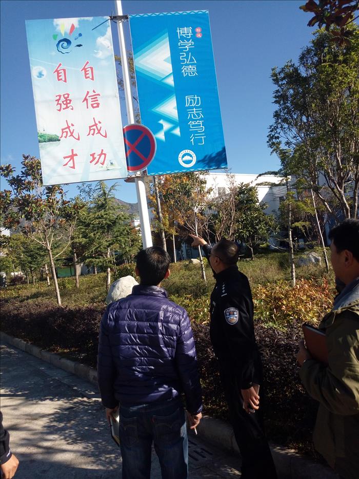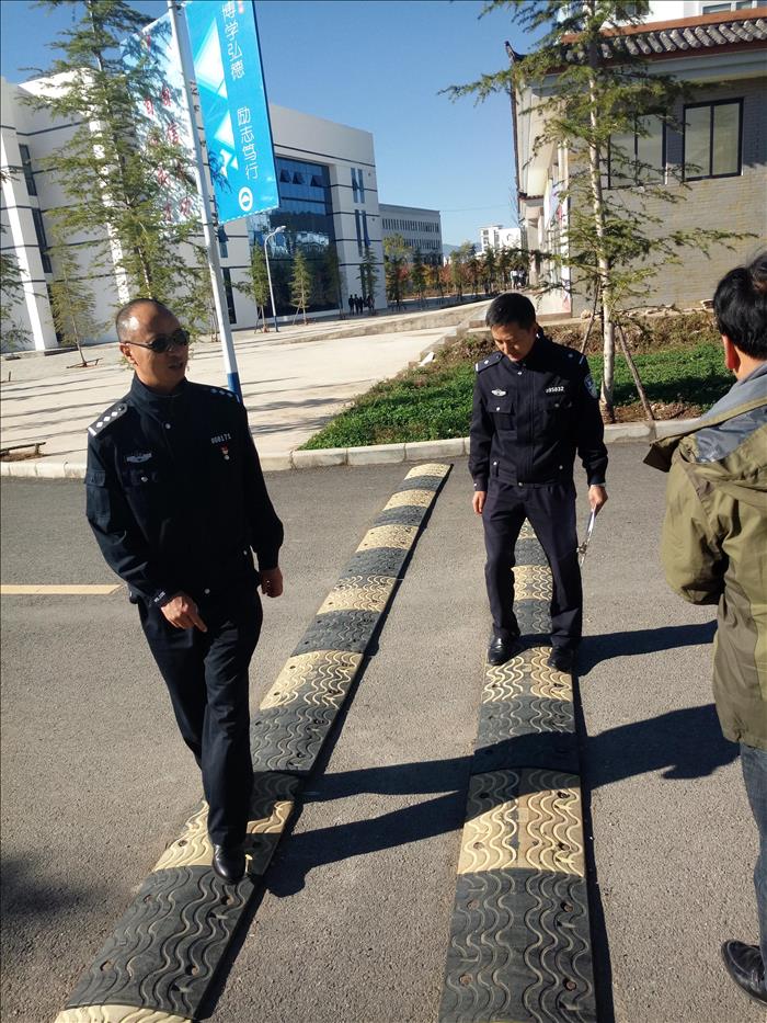 2016年11月10日,古城区交警二大队中队长进入我校实地查看指导校内安全标识标牌完善情况。