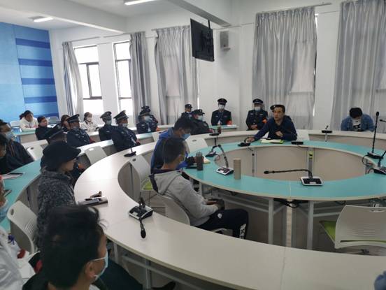 为做好开学复课消防安全指导服务工作,普及消防常识和逃生技能,提高学校消防安全宣传教育工作水平和大学生群体的消防安全素质,4月9日下午,副校长张兰胜、保卫处、学生处、后勤服务中心、图书馆、教务处相关工作人员在实训楼502、503多媒体教室观看应急管理部消防救援局“全国大学消防公开课”视频直播。