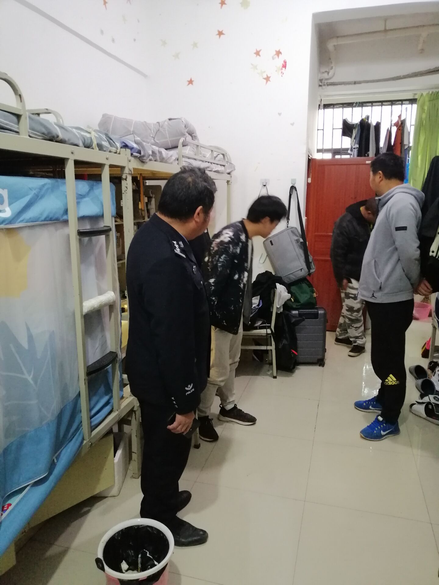 为进一步提高学生环境卫生意识,创建整洁文明的学习和生活环境,2021年4月1日保卫处同学生处、派出所民警对学生宿舍进行了检查,此次检查包括宿舍卫生环境、是否违规使用电器以及有无安全隐患等问题,针对上述问题,检查组的老师在检查过程中对存在的问题要求及时整改。通过此次宿舍卫生的检查号召学生重视宿舍环境卫生,禁止使用违规电器,文明用电;禁止携带违禁用品,保持宿舍干净整洁。保持优良作风,共同创造一个文明、和谐的宿舍。