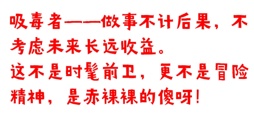 有些贩毒者鼓吹“吸毒可以炫耀财富,现在有钱人都吸毒”。这些不法分子瞄准一些积攒了一定财富的青年,向这一群体灌输“吸毒是有钱人的标志”“吸毒是有钱人才玩得起的高级享受”这样荒唐的错误观念。