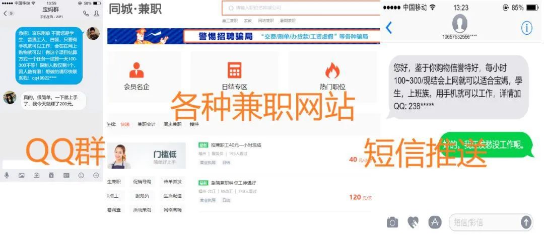 2就是通过群发短信,58同城、网页搜索、抖音、QQ群等网络平台发布虚假广告,骗“鸟”加QQ,并开展洗脑工作。